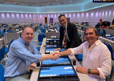 Der 2. Tag der Main Events bei der 54. Backgammon Weltmeisterschaft war für die deutschen Teilnehmer im Ungeschlagenen Feld dagegen sehr ernüchternd. 3 der 5 verbliebenen Spieler mussten in der Runde der letzten 64 gegen Brasilianer antreten: