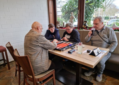 Im 2. Viertel konnten 4 Tische 10 Spiele erreichen. Auch hier gab es mit Veronika, Bernd, Hüseyin, Cevat und Klaus die sich im 2-stelligen Bereich absetzen konnten – wobei Bernd ganz weit vorne lag. Mehmet hat das nur knapp verfehlt, aber doch unter den Top 6 in diesem Viertel. Wolfgang landete im Aus.