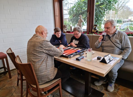 Im 1. Viertel setzten sich Ralf, Toni, Klaus, Heribert, Bernd und Ohannes gleich mal im 2-stelligen Bereich ab und katapultieren sich in die Top 6. Ins „Aus“ katapultierten sich Gerhard und Cevat. Nicht so schlimm – sie haben ja noch 3 weitere Viertel vor sich. Nur ein Tisch erreichte das gesetzte Ziel von 10 Spielen.