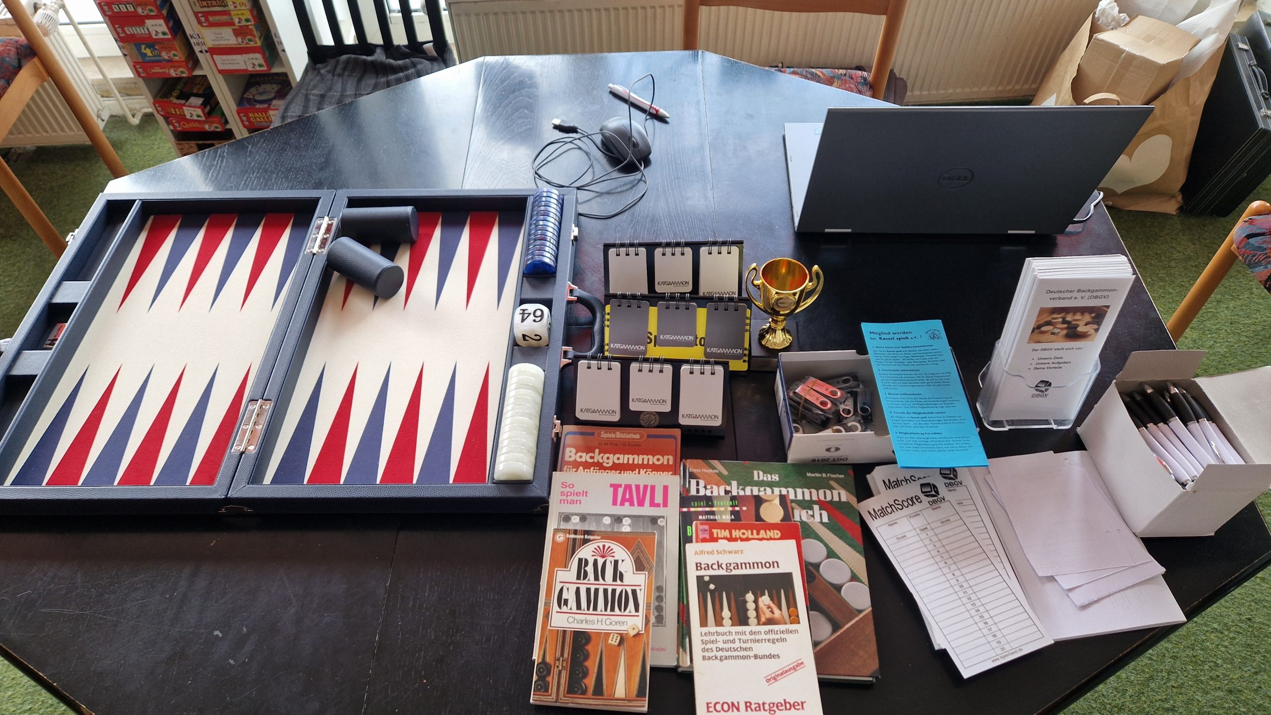 Zum ersten Mal in Kassel fand am Samstag, 16. März, um 13 Uhr ein kostenloses und für alle offenes Backgammon-Turnier statt. Der gemeinnützige Verein Kassel spielt e. V. unterstützte die Veranstaltung, indem er seine Räumlichkeiten zur Verfügung stellte. Zudem sponserte u. a. der DBGV attraktive Sachpreise.