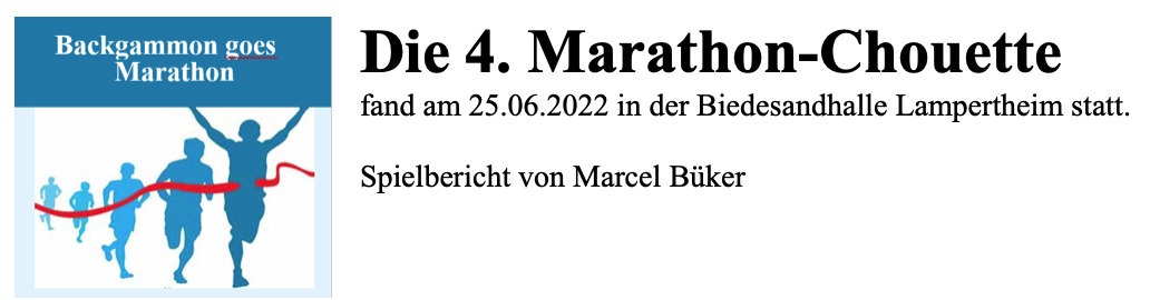 Gespielt wurden 42 Runden (Spiele) – daher der Begriff „Marathon“ – die in 4. Viertel unterteilt sind. Für die ersten 3 Viertel haben die Teilnehmer in jedem Viertel 1:45 Std. Zeit 10 Runden pro Viertel zu spielen. Im 4. Viertel (Finale) werden 12 Spiele in 2 Std. gespielt.