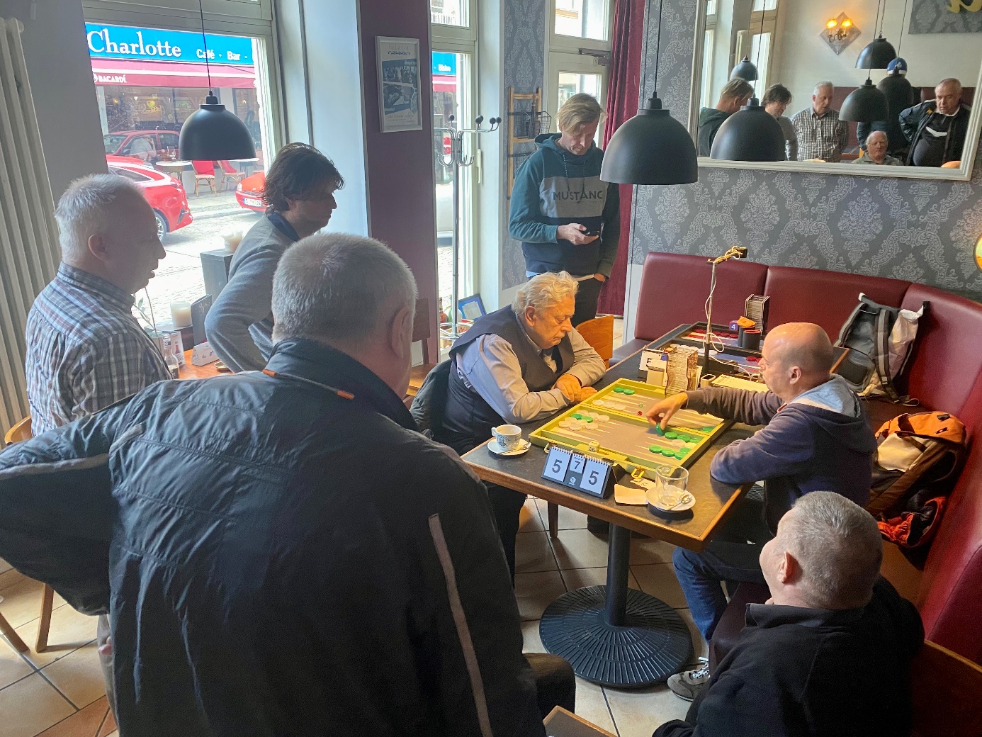 Halbzeit in der Meisterserie. Vier Spieler mit hauchdünnen Punktabständen habensich vorne abgesetzt. Rolf Schüler vor Tilman Söhnchen, Leonid Riskin und Ralf Sudbrak.