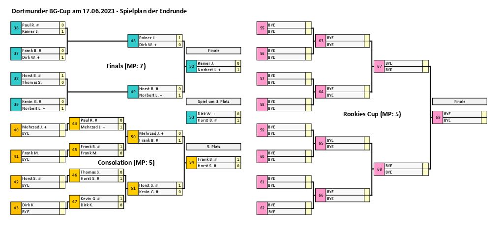 Daraus ergaben sich folgende Final-, und Consolation-Begegnungen: