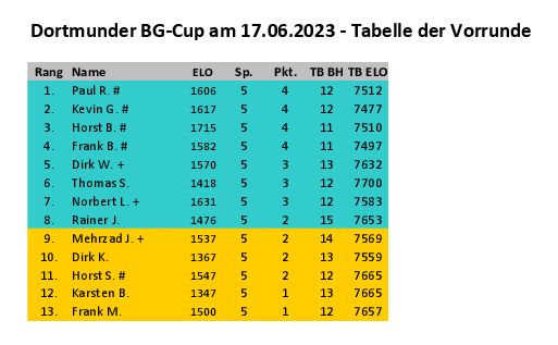 Und es ergab sich folgende Vorrundentabelle: