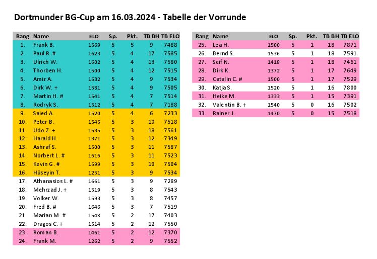 Und es ergab sich folgende Vorrundentabelle: