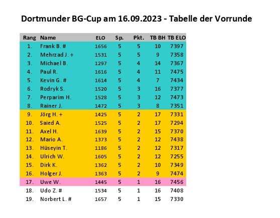Und es ergab sich folgende Vorrundentabelle:
