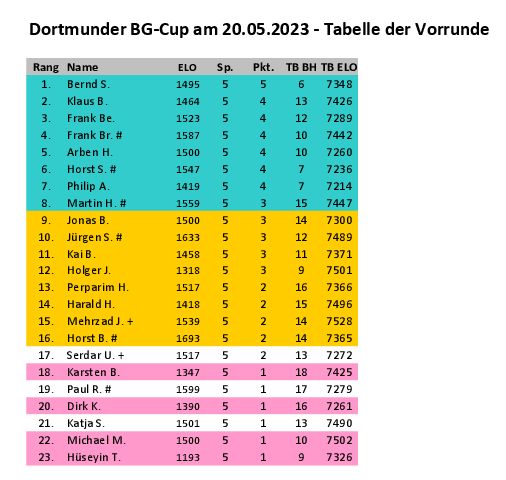 und gegen 18.00 Uhr ergab sich folgende Vorrundentabelle: