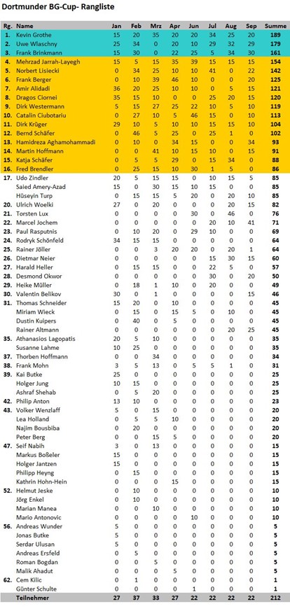 am 21. September haben wir das achte Turnier des Dortmunder Backgammon Cups im BowlTreff Dortmund mit 22 Teilnehmern ausgespielt.
