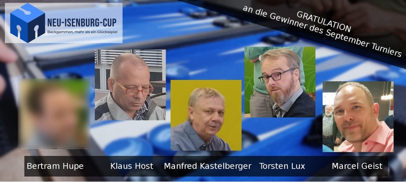 Treffpunkt war wie immer die Tri-Lounge und wie von nahezu jedem Teilnehmer bestätigt findet Ihr die Location für ein Backgammon Turnier „Top“. Bedauerlicherweise hatten wir krankheitsbedingt ein paar Ausfälle, des weiteren waren 2 parallel Veranstaltung so das wir diesmal mit 24 Teilnehmer das Turnier ausgetragen haben. Auch das Wetter war nicht auf unserer Seite so haben wir kurzerhand die Veranstaltung komplett in die 2 großen Konferenzräume und die Lobby gelegt. In 5 Runden wurden 43 Matches gespielt und am Ende des Tages gab es fünf Finalisten: Bertram H. , Klaus Host, Manfred Kastelberger, Torsten Lux und meine Person haben sich den CUP geteilt. Auch hier sei zu erwähnen, das es für Bertram sein erstes und für Manfred sein zweites Live Turnier war. P.s.: Manfred, Du siehst, nichts ist in unserem Hobby Backgammon unmöglich 😉 .